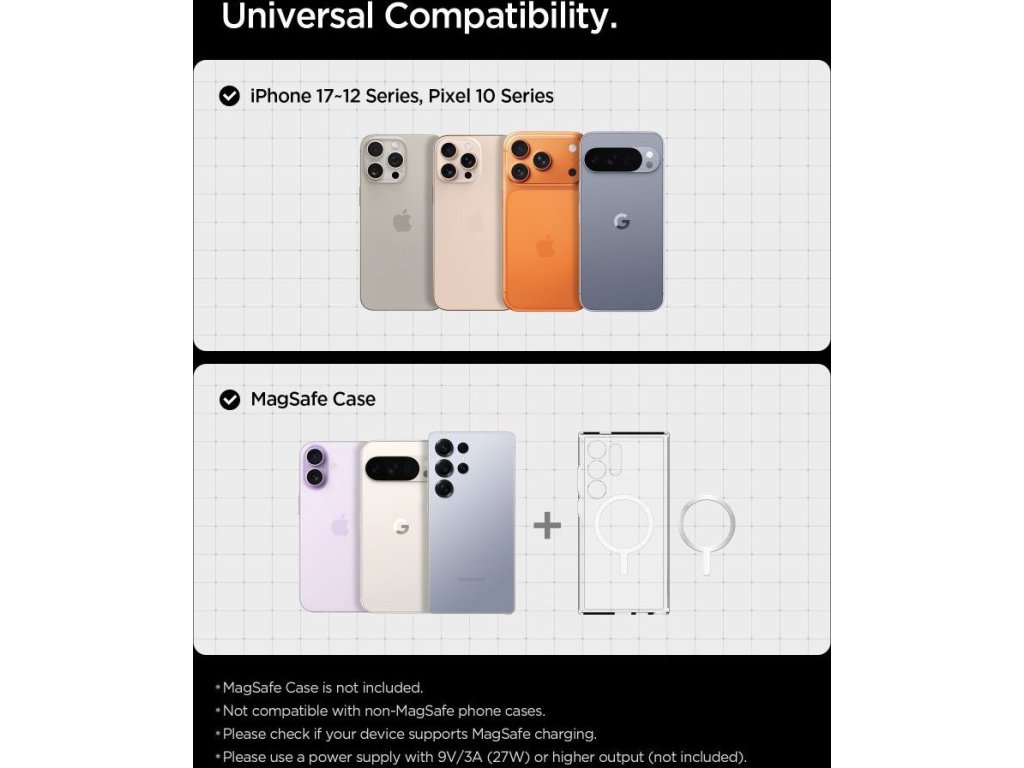 Spigen EV15MAQ Essential Qi2 je magnetický držák do auta s bezdrátovým nabíjením s certifikací Qi2 až 15 W. Po montáži na větrací otvor umožňuje rychlé a bezpečné nabíjení telefonu během jízdy, takže odpadá nutnost připojovat kabel pokaždé, když nastoupíte do auta. Stačí přiblížit telefon – magnety zařízení automaticky přitáhnou a začnou se nabíjet.