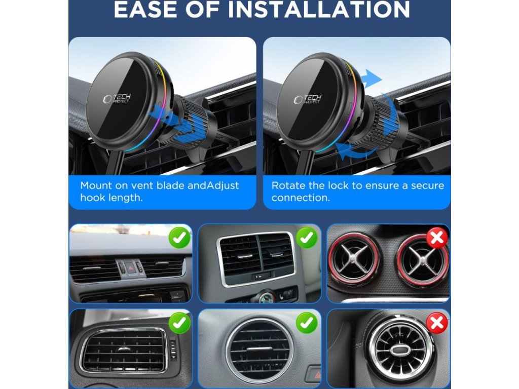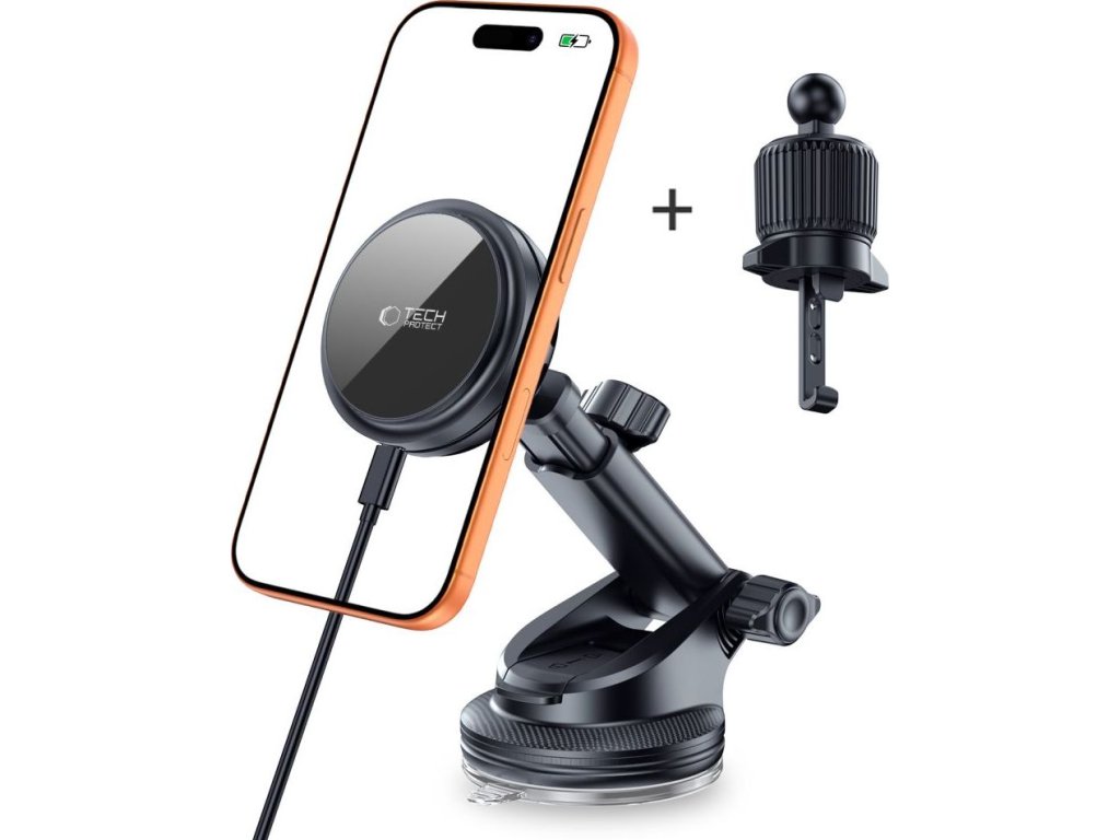 TECH-PROTECT V9 ARCTICBOOST MAGNETIC MAGSAFE DASHBOARD & VENT CAR MOUNT WIRELESS CHARGER 25W QI2.2 BLACK