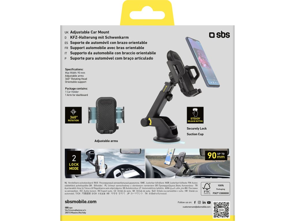 Držák SBS TEHWSUPWIND je kompatibilní s většinou chytrých telefonů o šířce až 90 mm, včetně modelů značek jako Samsung, Apple, Huawei a Xiaomi. Díky výsuvným ramenům a flexibilnímu designu si můžete být jisti, že váš chytrý telefon bude bezpečně uchycen během každé cesty.