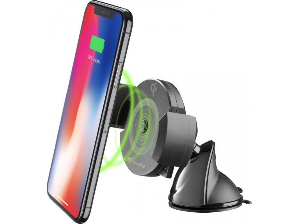 Univerzální držák CellularLine Pilot Active s přísavkou a funkcí bezdrátového nabíjení, černý