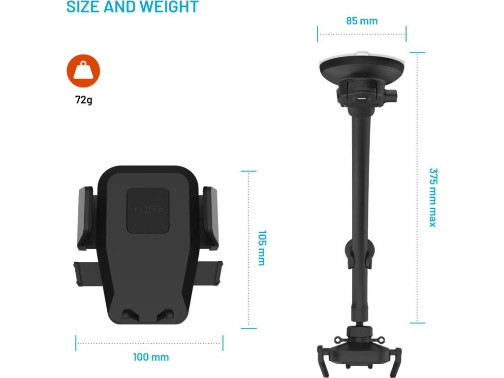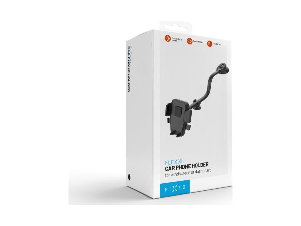 Univerzální držák do auta FIXED Iconiq Flex XL s rychloupínacím systémem Push and grip nabízí bezpečné a jednoduché uchycení telefonu, které zvládnete jednou rukou.