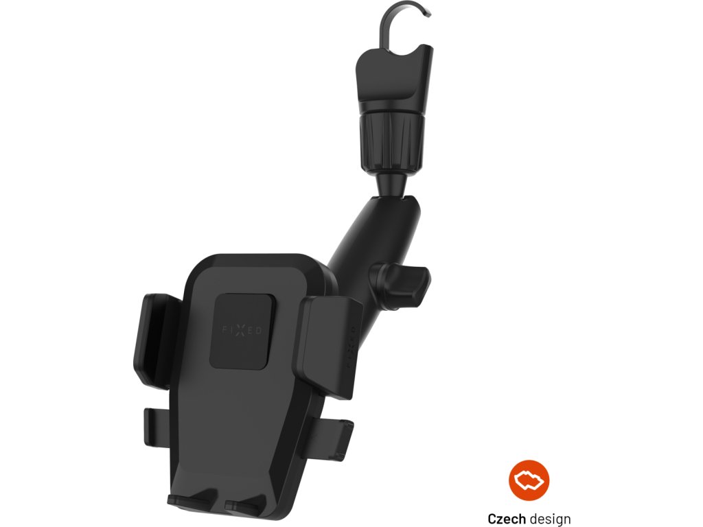 Univerzální držák do auta FIXED Iconiq Mirror s rychloupínacím systémem Push and grip nabízí bezpečné a jednoduché uchycení telefonu, které zvládnete jednou rukou. Držák je kompletně vyvíjený v České republice a nabízí tichý a plynulý mechanismus v kombinaci s minimalistickým funkčním designem. Telefon stačí lehce přitisknout na plochu držáku a boční kleště se automaticky přizpůsobí velikosti telefonu do šířky až 8,3 cm. Jediným stiskem se telefon stejně rychle uvolní. Stabilita upevněného telefonu je zespodu zajištěna zkosenými opěrkami, které nebrání přístupu k nabíjecímu konektoru. Tělo držáku je kombinací tvrzeného plastu a ochranných silikonových prvků, které tvoří jeden celek. Držák přichytíte háčkem na zpětné zrcátko či opěrku hlavy a pomocí utahovacího mechanismu pevně zajistíte pro stabilitu i během větších otřesů jízdy. Stejným způsobem lze do ideálního pozorovacího úhlu nastavit také klouby ramene a následně je zabezpečit. Organizaci kabelů usnadňují odnímatelné úchyty na zadní straně držáku. S držákem FIXED Iconiq Mirror si užijte každou jízdu bez starostí.