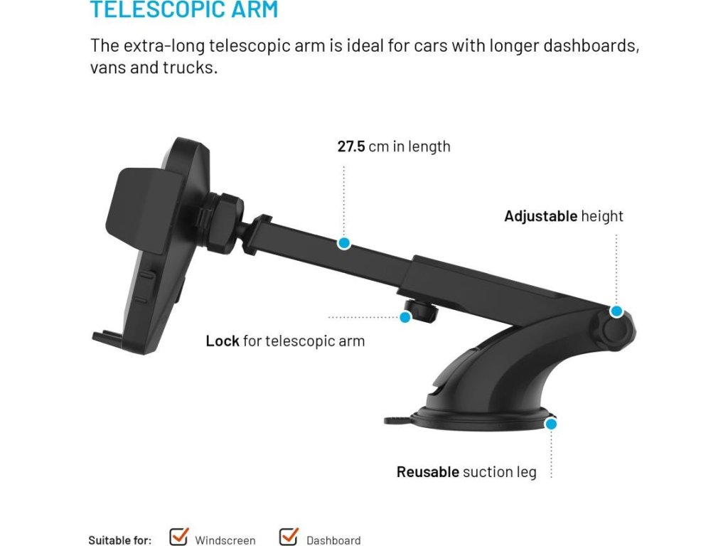 - univerzální držák telefonu na čelní sklo či palubní desku