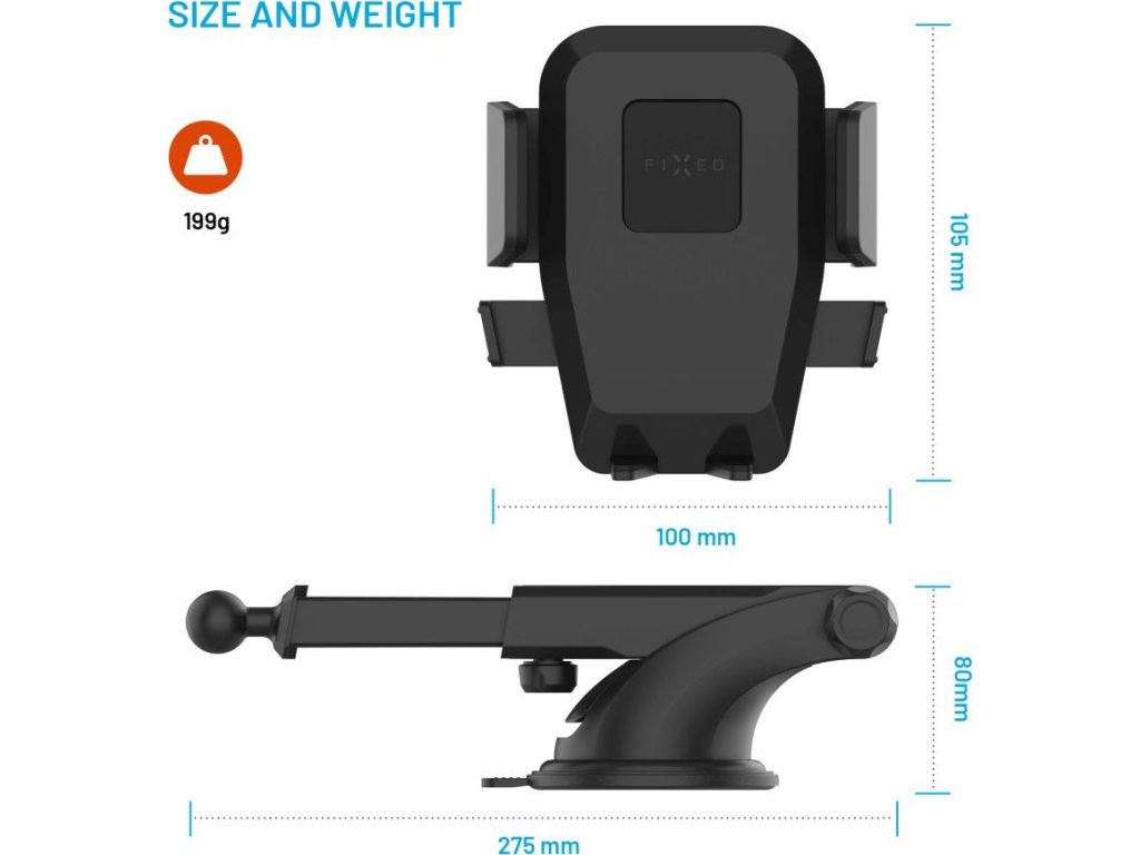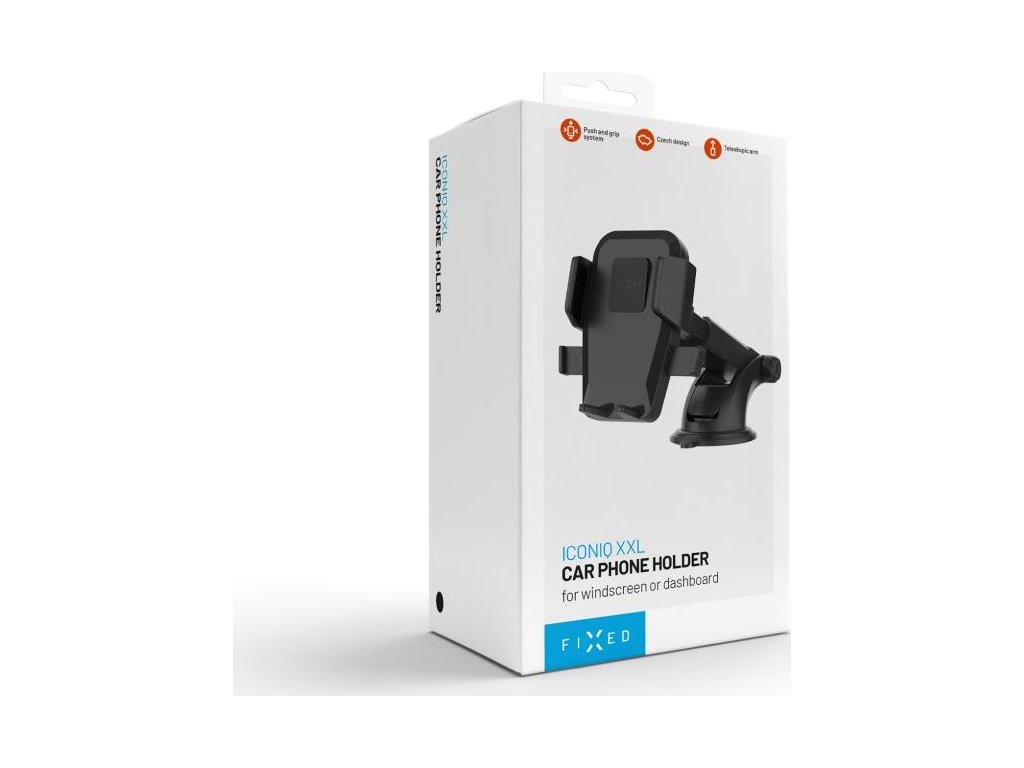 Univerzální držák do auta FIXED Iconiq XXL s dlouhou přísavkou na sklo nebo na palubní desku, černý