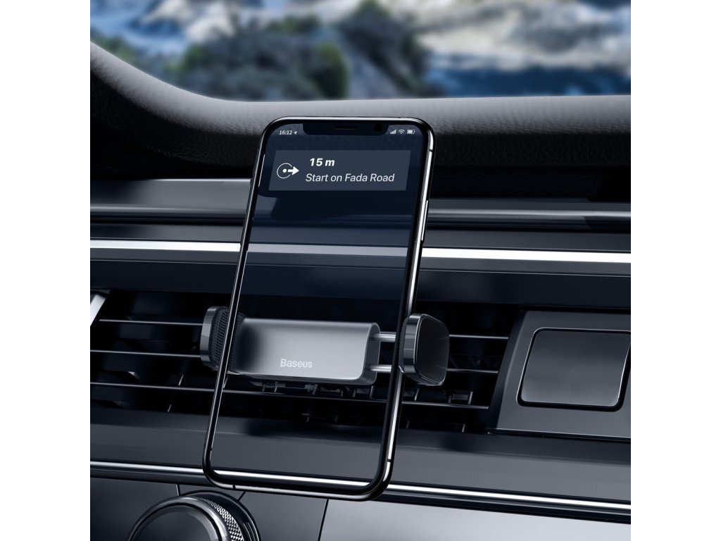 Držák do auta pro ventilační mřížku Baseus zaručuje stabilní a bezpečný úchop pro váš telefon. S jeho pomocí můžete pohodlně používat navigaci nebo poslouchat své oblíbené písničky za jízdy. Možnost otočit kolébku o 360° vám dává potřebnou volnost a její nastavení šířky od 55-84 mm zajišťuje kompatibilitu s většinou smartphonů.
