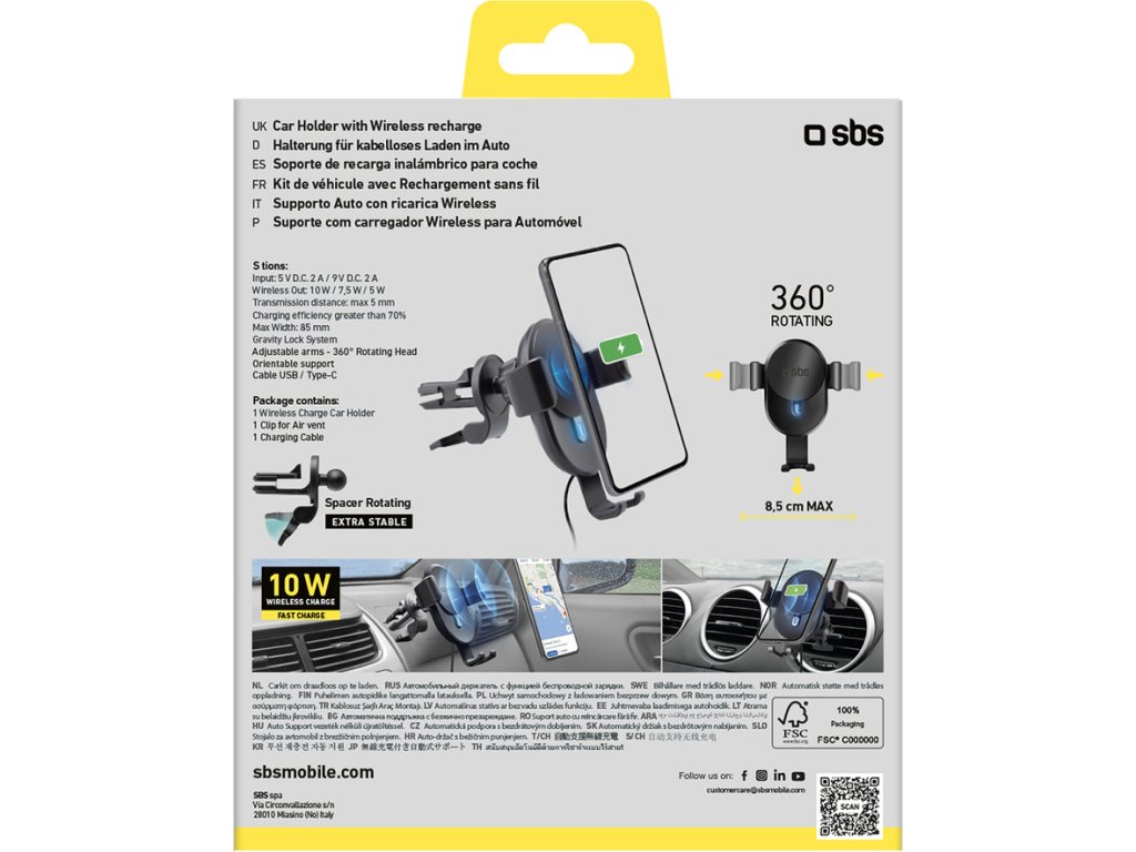 Držák na smartphone s indukční nabíječkou SBS TESUPWIR10CLIPSTG 10W - černý