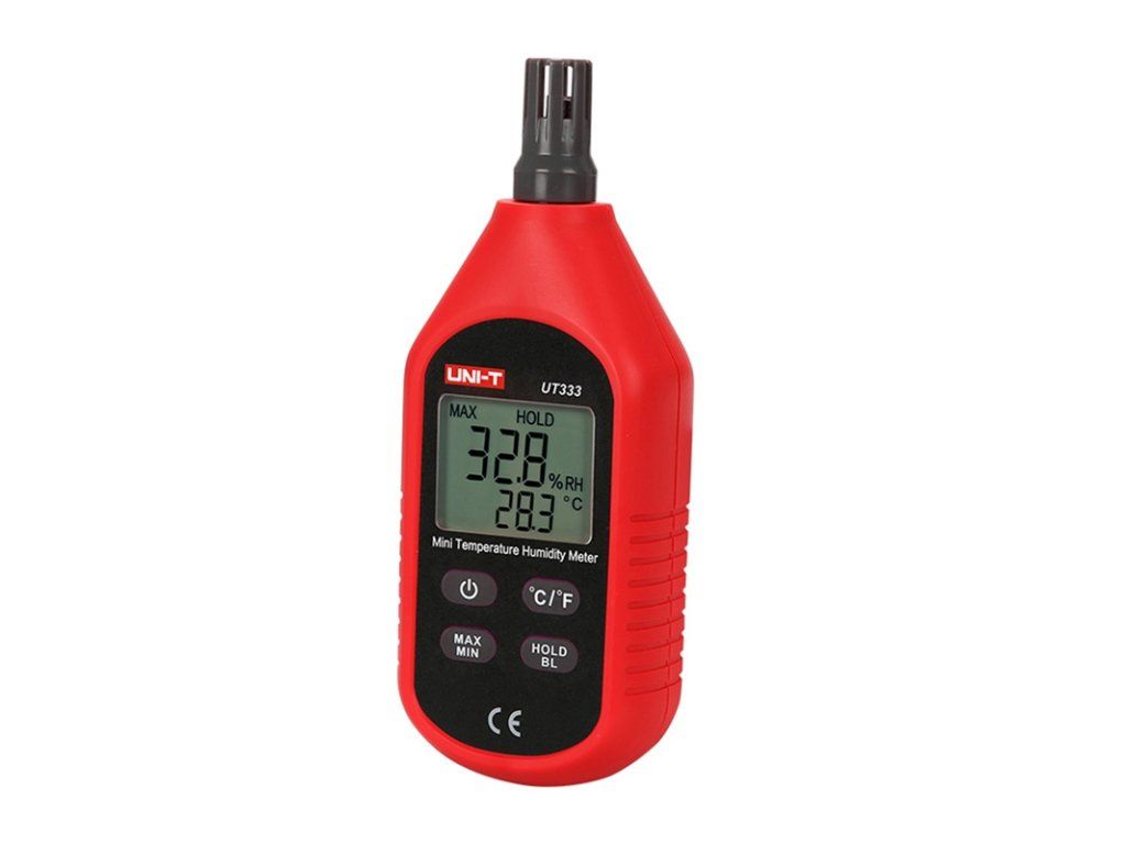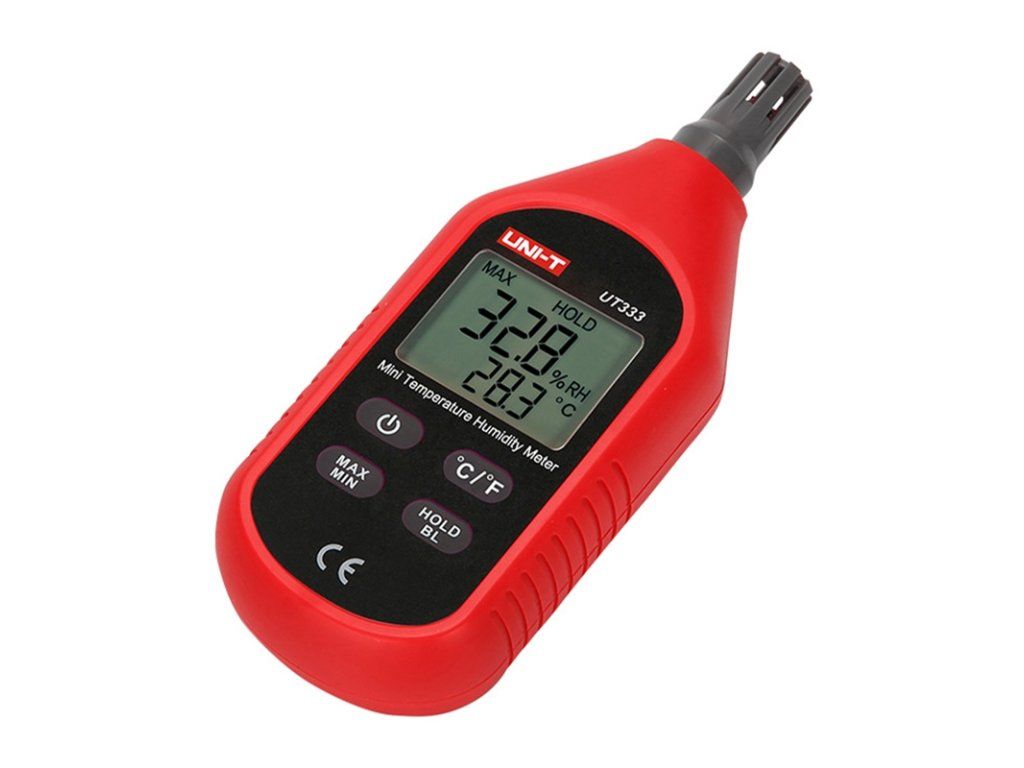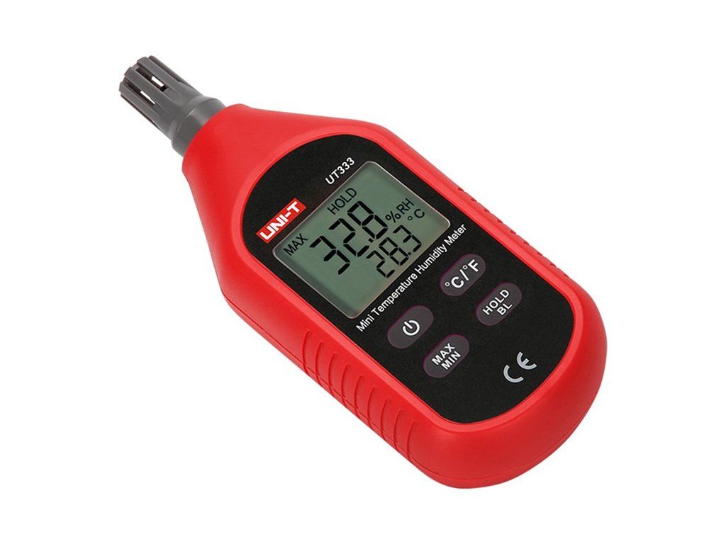 UNI-T UT333 je digitální měřič teploty a vlhkosti určený k přesnému měření okolních podmínek. Přístroj bude vhodný jak pro domácí, tak pro profesionální použití - například ve skladech, kancelářích, sklenících, serverovnách, laboratořích atd. UT333 měří teplotu od -10 °C do 60 °C a vlhkost od 0 % do 100 % relativní vlhkosti s přesností ±1 °C, resp. ±5 % relativní vlhkosti, takže je přesný pro většinu každodenních aplikací. Díky kompaktnímu provedení, nízké hmotnosti (102 g) a podsvícenému displeji je přístroj praktický a pohodlný k použití i v nedostatečně osvětlených prostorách.