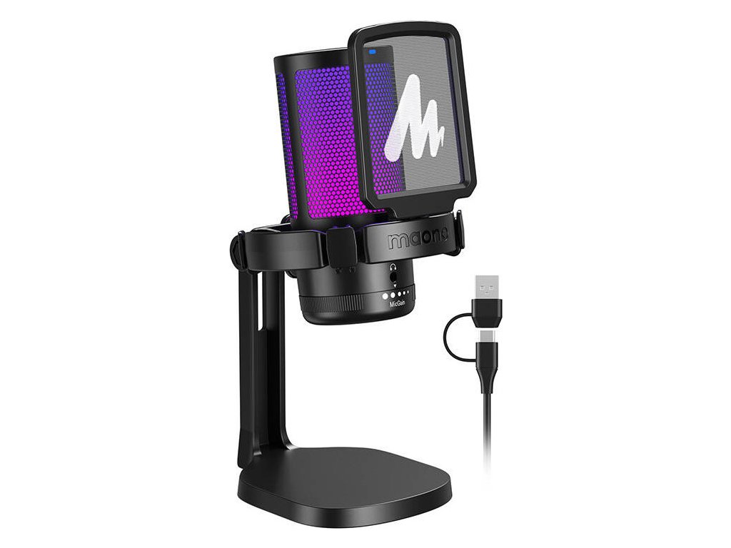 Maono DGM20 zaujme nejen jednoduchostí Plug and Play a kompatibilitou s různými platformami, ale nabízí také pokročilé ovládání kvality zvuku prostřednictvím přesného ovládacího panelu. Vizuálním lákadlem jsou možnosti osvětlení, které dodají každému sezení jedinečný charakter. Kompletní sada s antivibračním košem a pop filtrem zajišťuje křišťálově čistý zvuk bez nežádoucích vibrací a šumu.