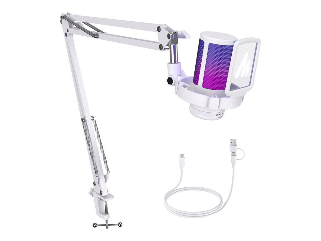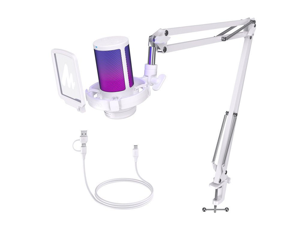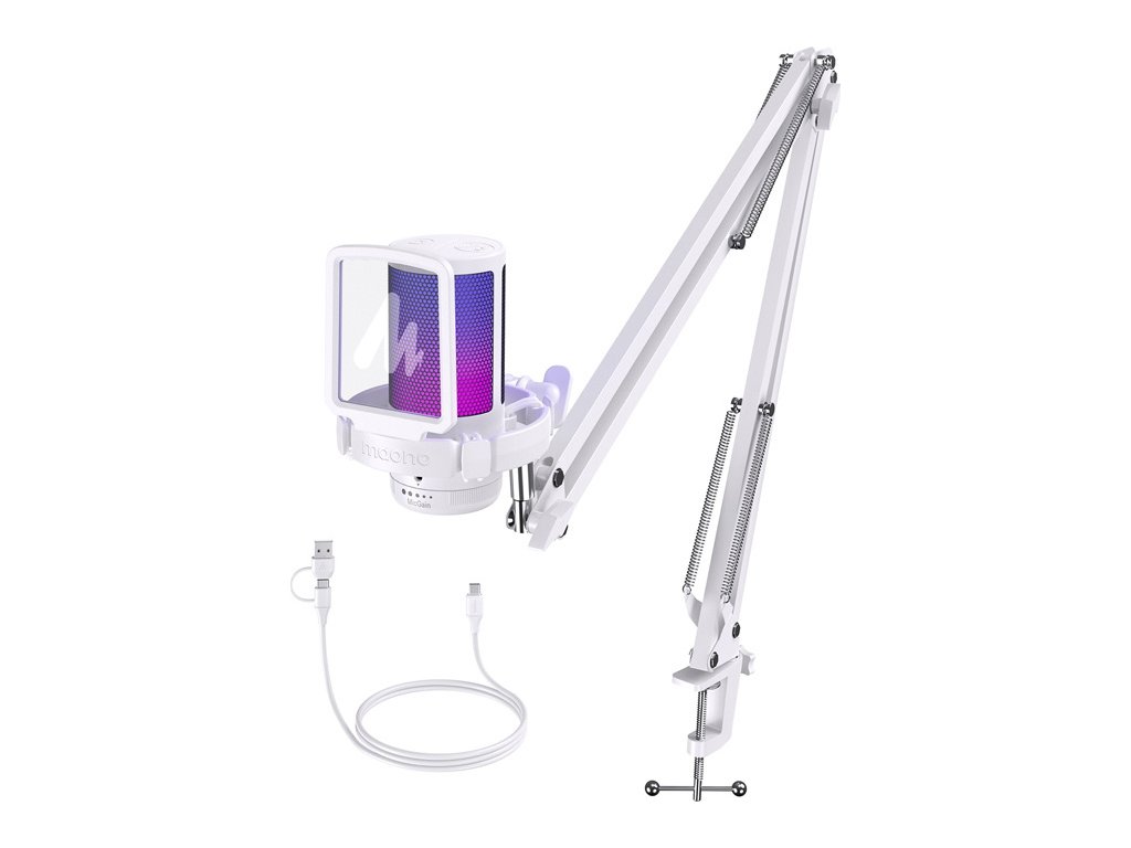 Maono DGM20S je USB kondenzátorový mikrofon určený pro hráče, streamery a tvůrce, kteří chtějí dosáhnout jasného a čistého zvuku bez složitého nastavování. Nabízí aktivní potlačení šumu, nastavitelnou citlivost mikrofonu, RGB podsvícení se třemi režimy a rychlé ztlumení jedním tlačítkem. Mikrofon je kompatibilní se systémy Windows, macOS a konzolemi PlayStation 4 a 5. Poznámka: produkt nefunguje s konzolí Xbox. Dodává se s robustním nastavitelným ramenem, které umožňuje pohodlné umístění zařízení na stole.