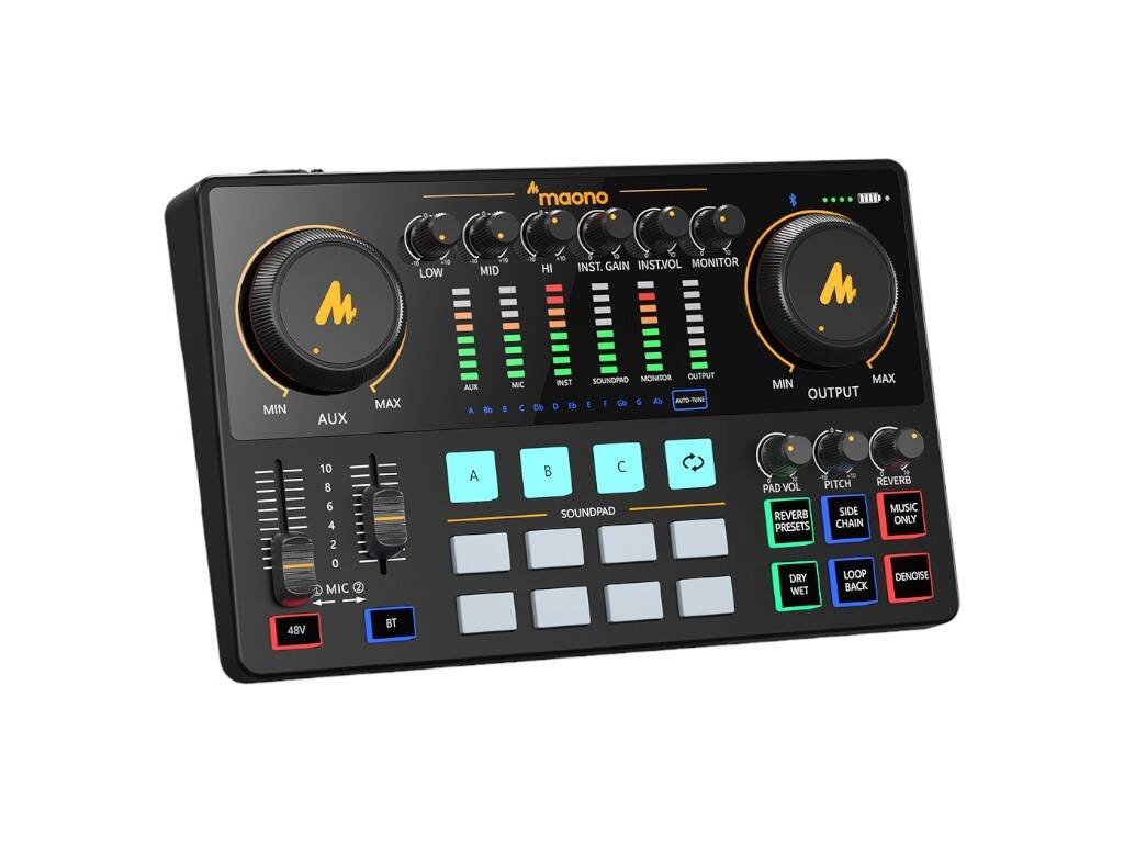 Zvuková karta Maono AME2 je plně integrované audio produkční studio pro streamery. Kombinuje revoluční funkce s vynikající kvalitou zvuku, neomezeným přizpůsobením a bezkonkurenčně snadným používáním. Je ideální pro nahrávání podcastů, streamování, voice-over a tvorbu obsahu. Přitom se vyznačuje kompatibilitou s PC, smartphony, tablety a fotoaparáty, stejně jako s Windows a Mac OS.