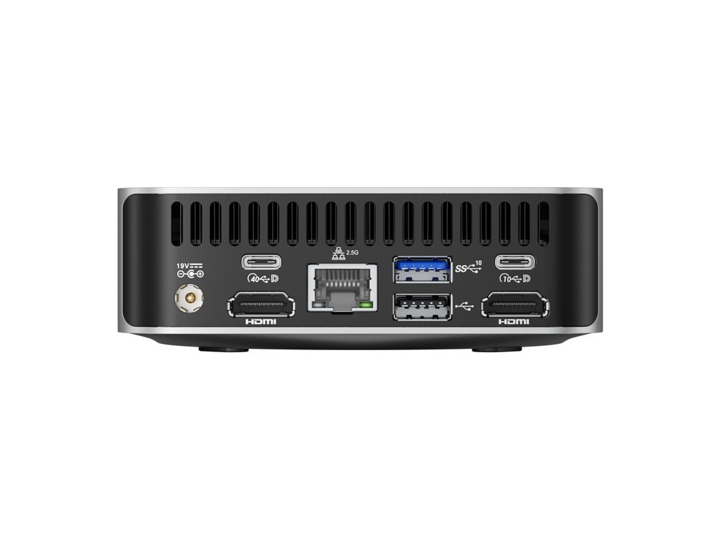 | Porty a tlačítka | 1x USB-A 3.2 Gen 2 (zadní panel), 1x USB-A 2.0 (zadní panel), 1x USB-A 3.2 Gen 2 s Power Delivery (přední panel), 1x USB-A 3.2 Gen 2 (přední panel), 1x USB-C 3.2 s Power Delivery (zadní panel), 1x USB-C 4.0 Gen 3 s podporou Power Delivery (zadní panel), 1x 3,5mm stereofonní konektor pro sluchátka (přední panel), 1x RJ45 (zadní panel) RTL8125BG-CG, 2x HDMI 2.0 (zadní panel), 1x DC vstup (zadní panel), 1x tlačítko napájení, 1x čtečka karet SD |