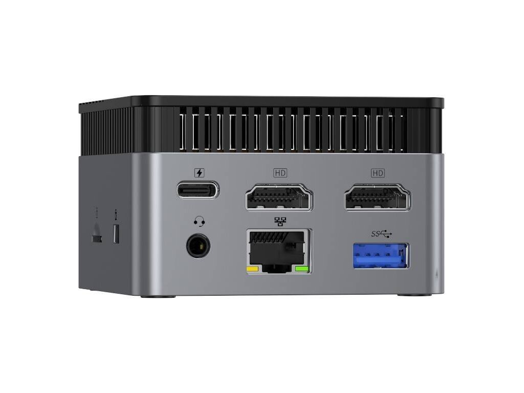 Navzdory svým působivým schopnostem si počítač G5 zachovává lehký (206 g) a kompaktní design - ve srovnání s jinými produkty svého druhu je počítač o 60 % menší. Díky velkorysé sadě portů, včetně USB3.2, Giga LAN(RJ45) a slotu pro karty TF/MicroSD, poskytuje zařízení všestrannou kompatibilitu s televizory, monitory, reproduktory, klávesnicemi, myší, tiskárnami nebo projektory.