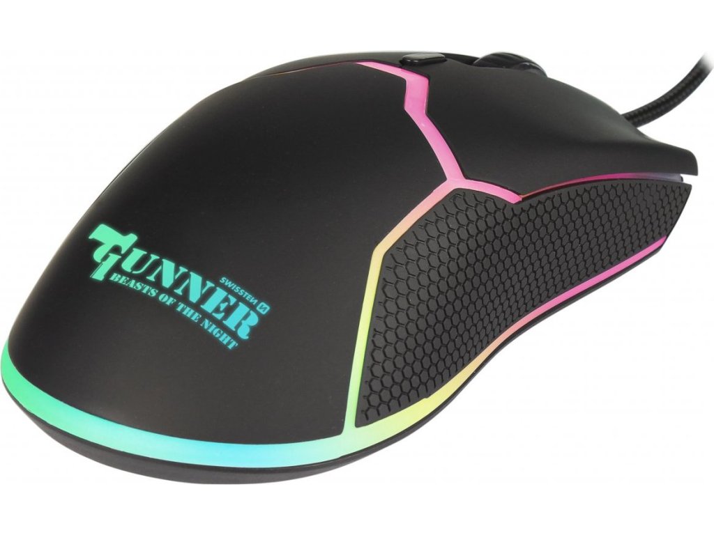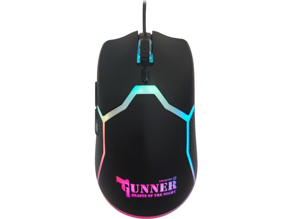 Swissten herní myš Gunner, RGB podsvícení, DPI: 800 - 7200, Kabel, Typ senzoru: Optický, Počet tlačítek: 5, Hmotnost: 100 gramů. Baleno v blistru Swissten.