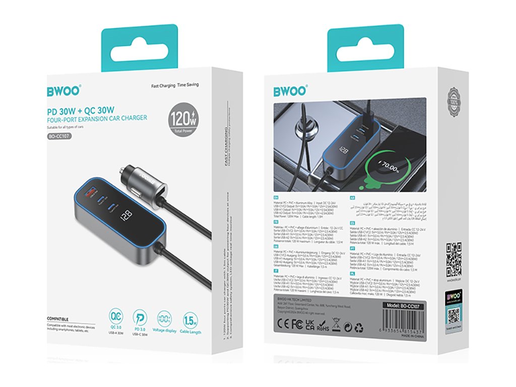 Autonabíječka BWOO CC107 PD 1x USB-C - USB-A port 30W černá