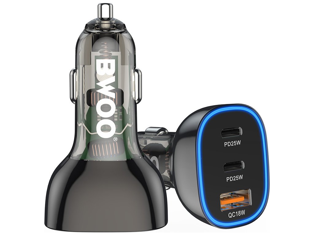 Autonabíječka BWOO PD 2x USB-C port + USB-A 68W černá