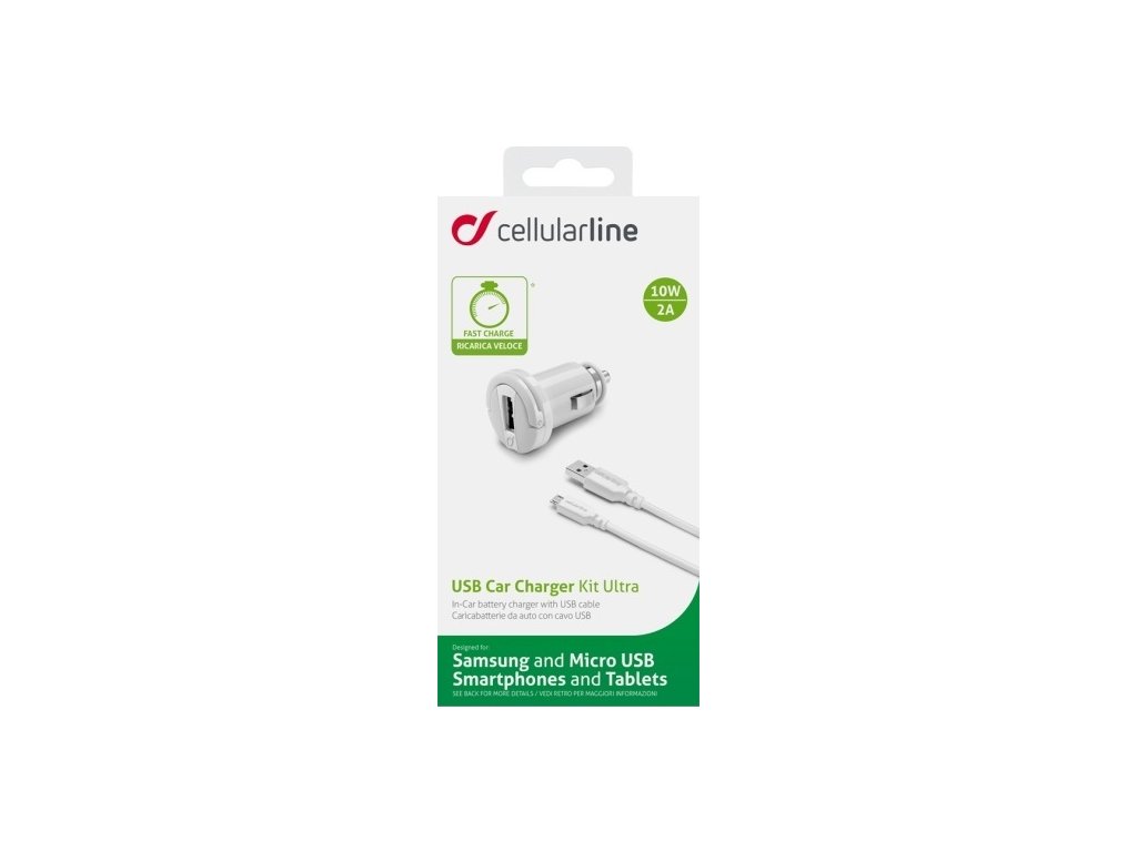Autonabíječka CellularLine s datovým kabelem a konektorem microUSB, 2A