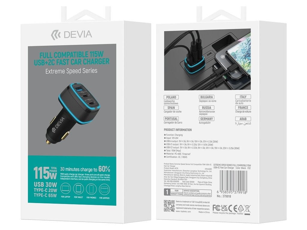 Autonabíječka Devia Extreme 115W 2x USB-C 1x USB černá