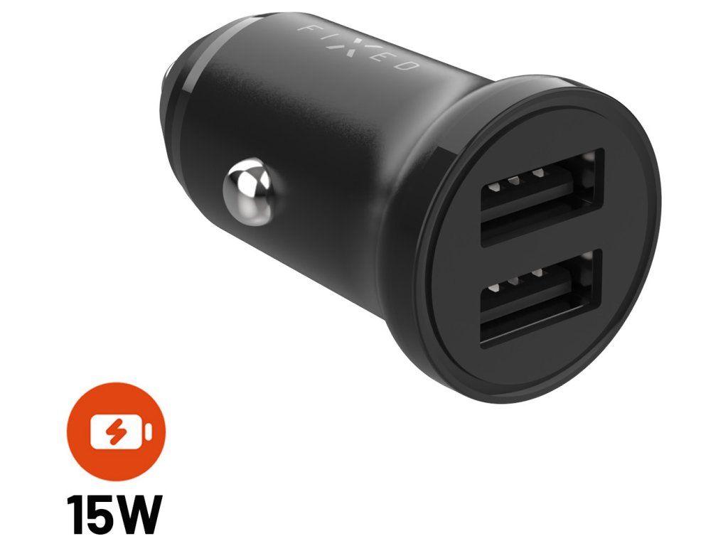 Autonabíječka FIXED s 2xUSB výstupem, 15W Smart Rapid Charge, černá