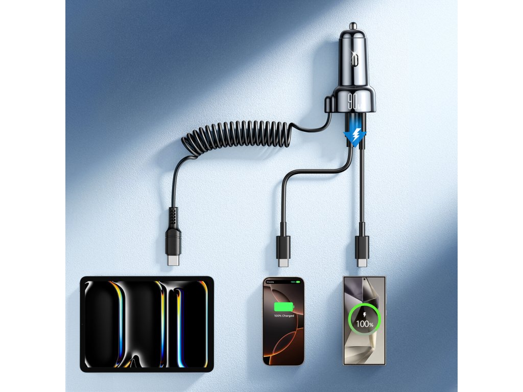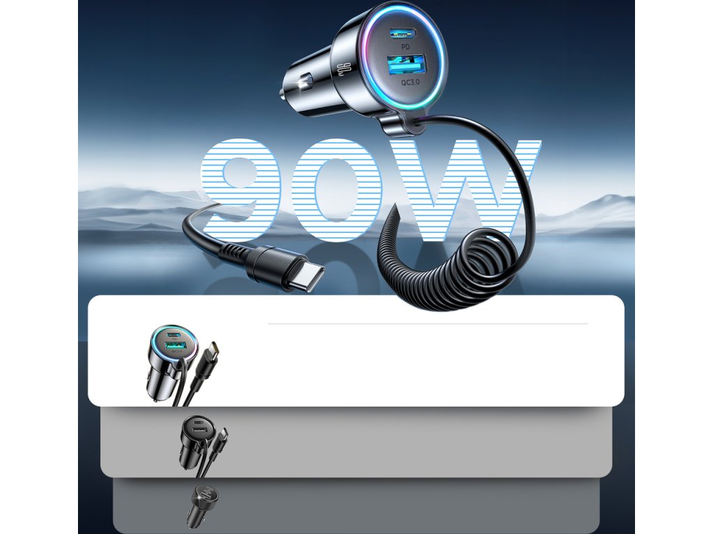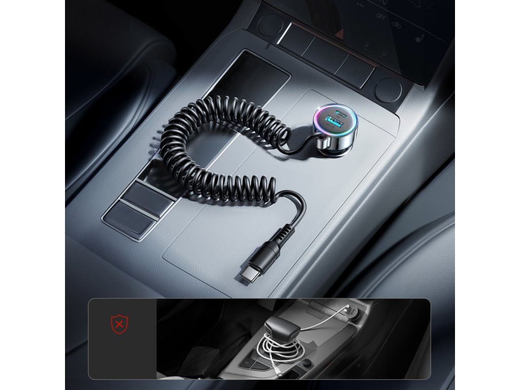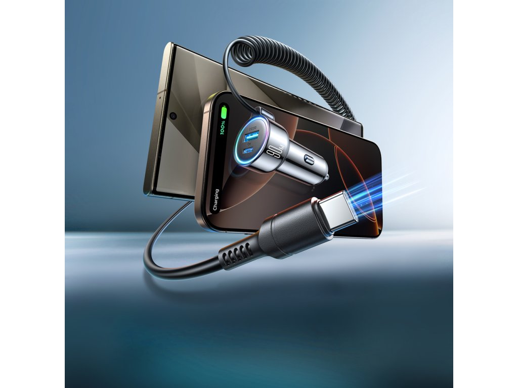 Autonabíječka Joyroom JR-CL07 72W 3v1 s 1,6m kabelem USB-C – černá