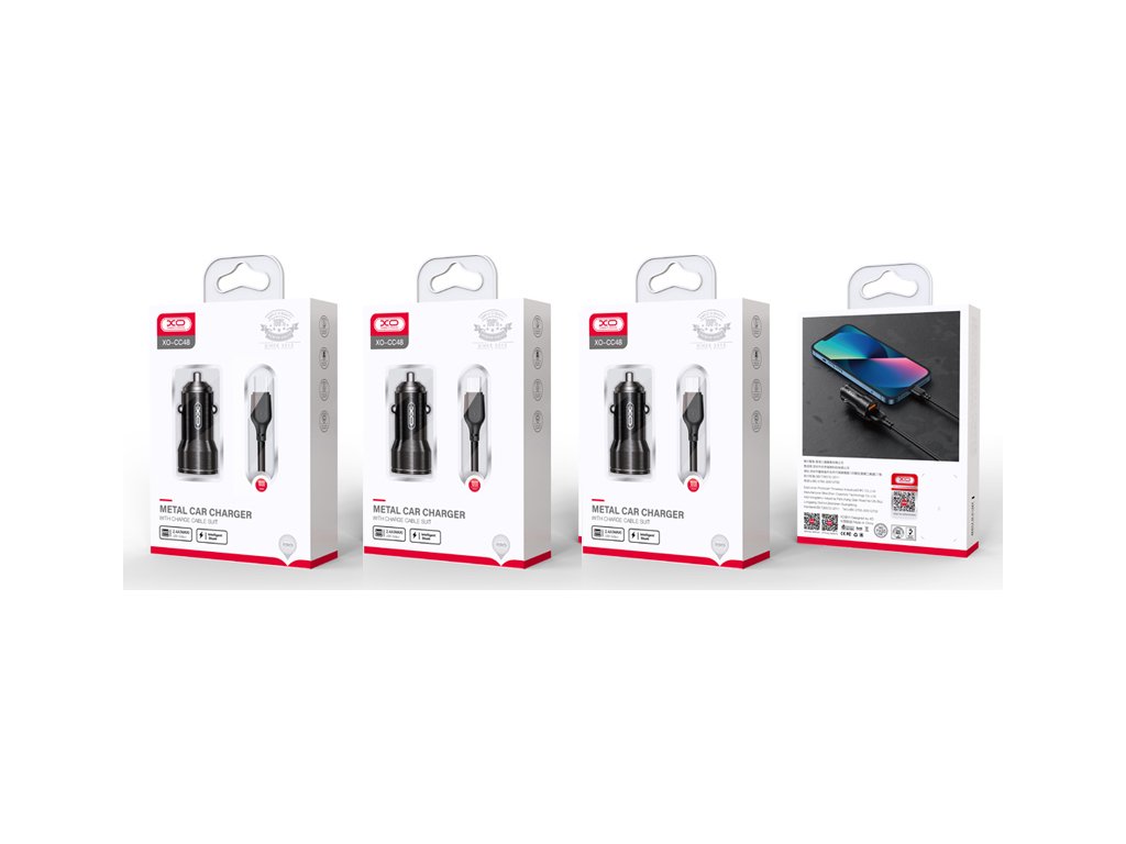 Autonabíječka XO CC48 2x USB 2,4A černá + USB-C kabel