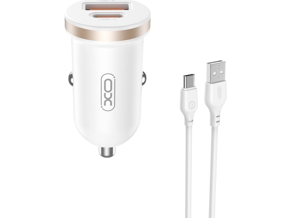 Autonabíječka XO CC56 PD 30W QC 1x USB 1x USB-C bílá + kabel USB - USB-C
