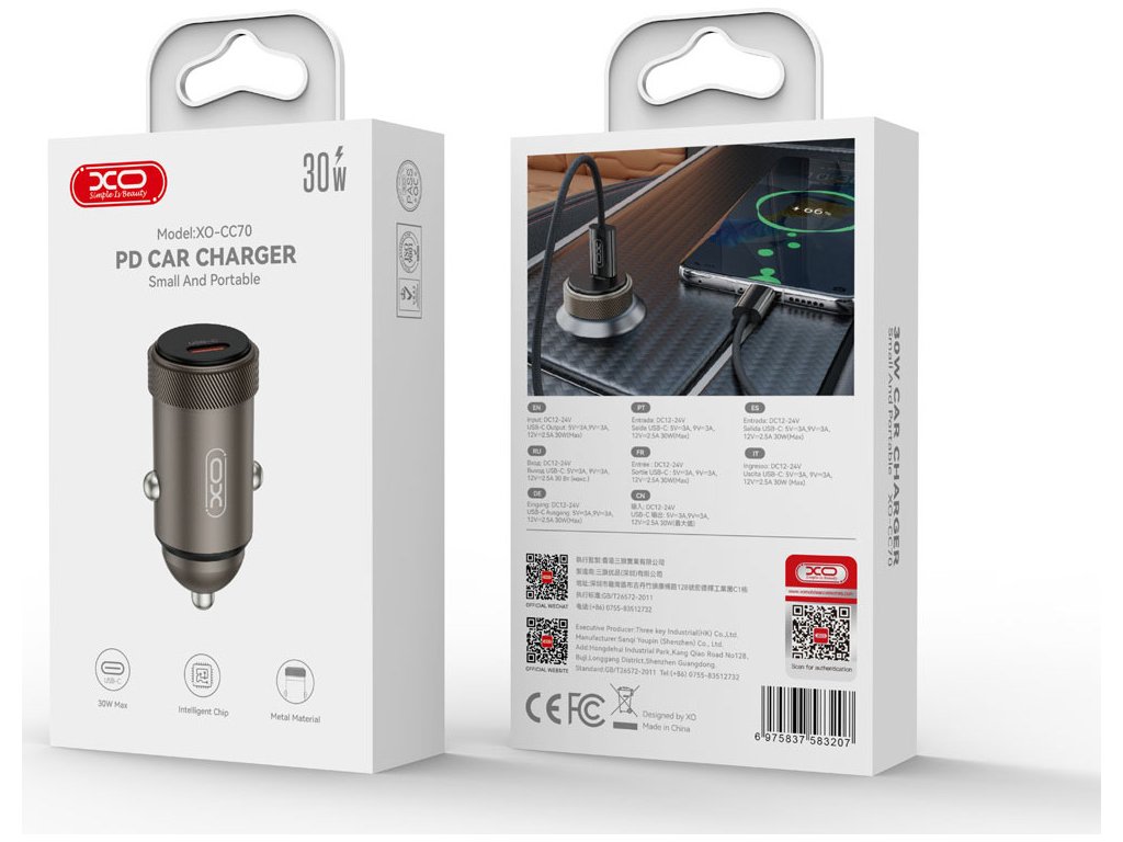 Autonabíječka XO CC70 PD 30W 1x USB-C černá