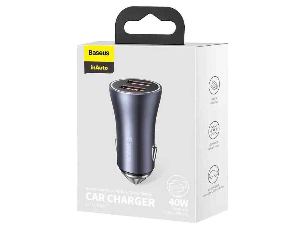 Baseus Golden Contactor Pro nabíječka do auta, 2x USB, 40W (šedá)