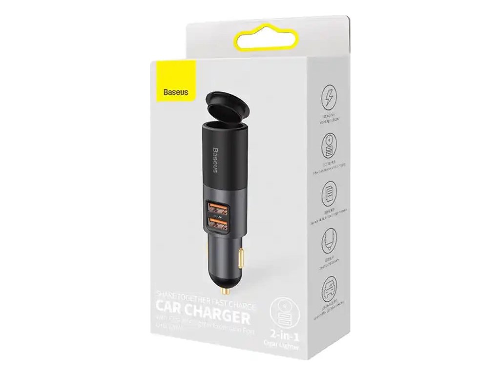 Baseus Share Together Rychlonabíječka do auta s rozšiřujícím portem pro zapalovač, 2x USB, 120 W (šedá)