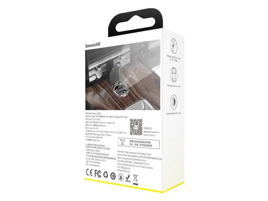 Kvalitní nabíječka do auta Baseus má vstup USB pro rychlé nabíjení připojeného zařízení. Podporuje technologii QC, je kompatibilní s mnoha typy mobilních zařízení a je vyrobena z kvalitního hliníku.