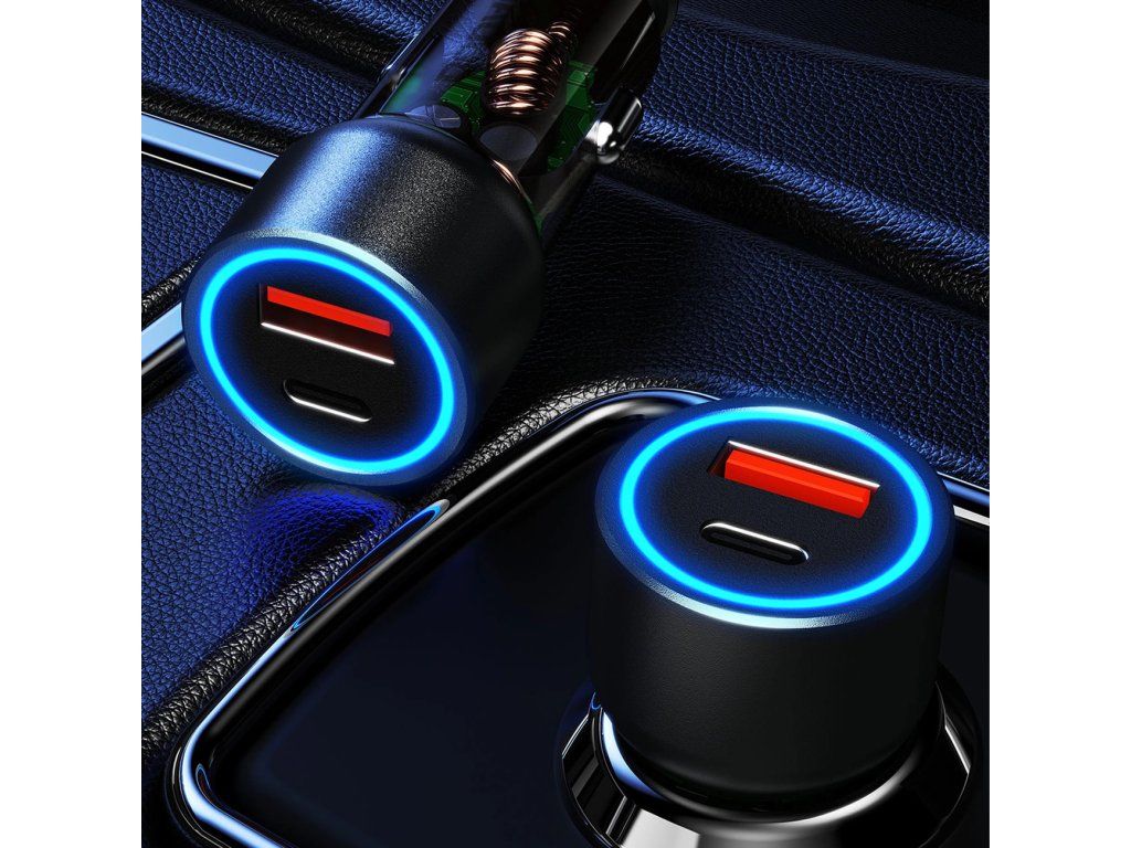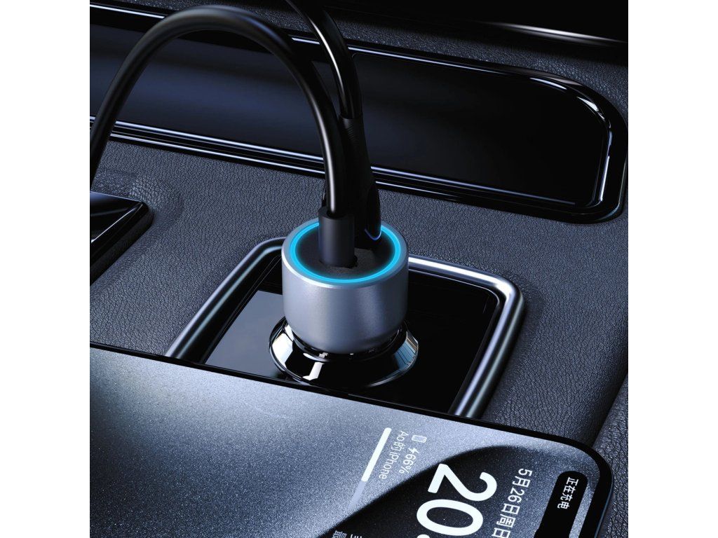 30W autonabíječka s duálními porty a zatahovacím kabelem USB-C je funkčním a pohodlným řešením pro nabíjení na cestách.