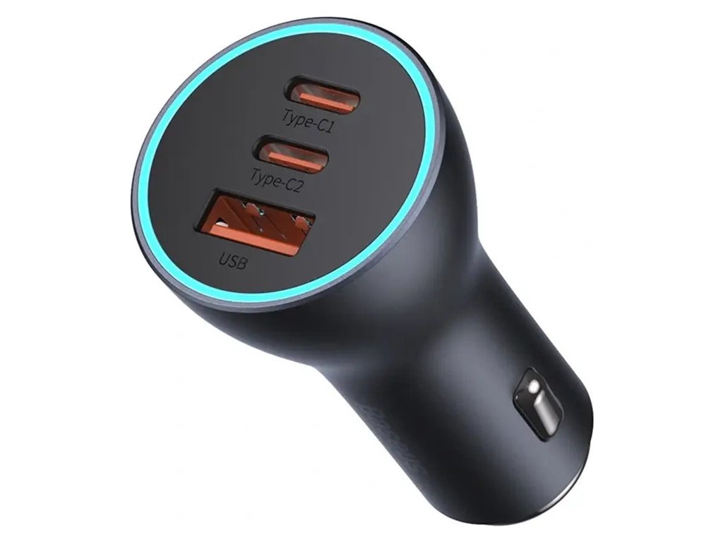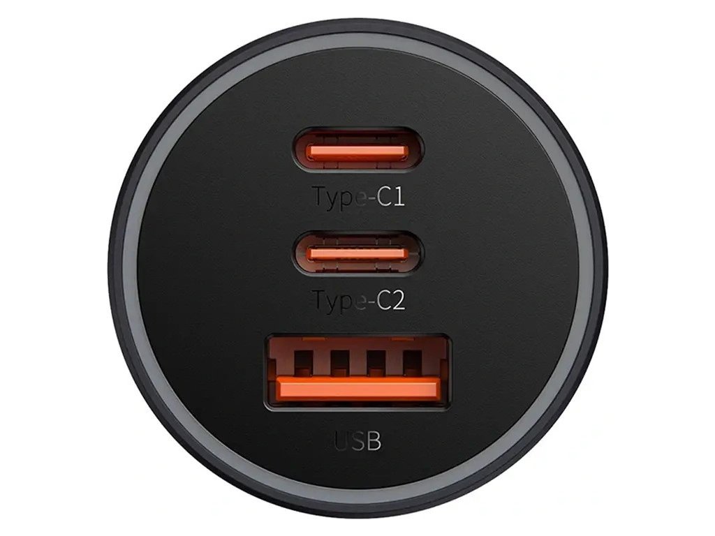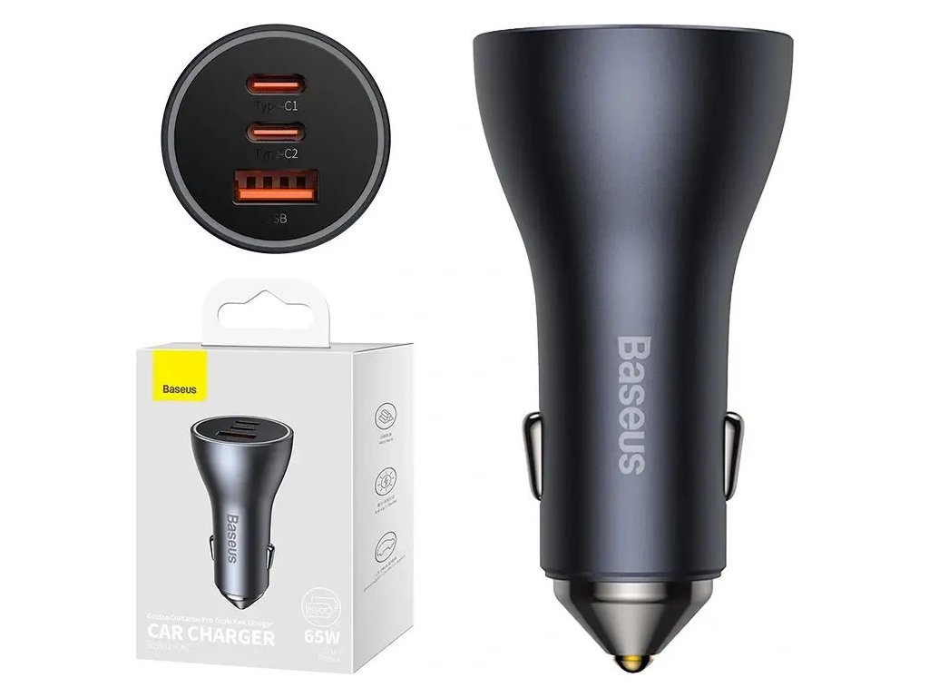 Baseus car charger Golden Contactor Pro Triple Fast 1x USB 2x USB-C 65W dark gray