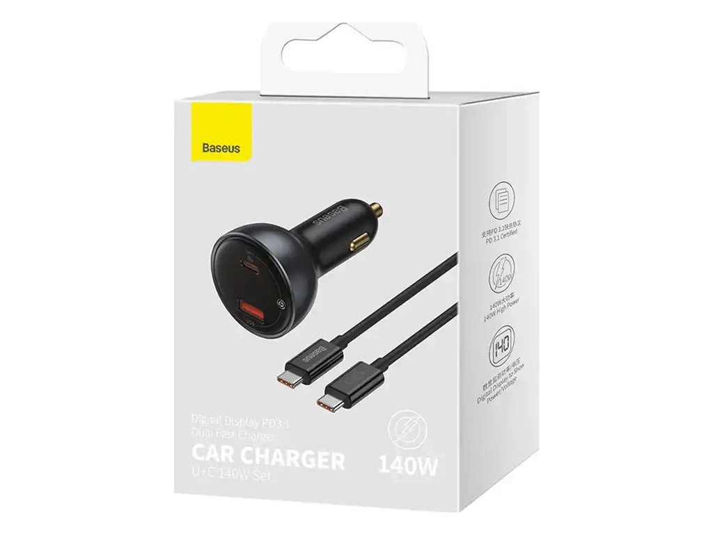 Vybil se vám na cestách telefon nebo notebook? Nyní už to není problém! Autonabíječka Baseus je vybavena 2 porty - USB-C a USB, které vám umožní rychle nabíjet až 2 zařízení najednou! Její maximální výkon dosahuje 140 W. Výrobek je kompatibilní s většinou vozidel s napětím 12 V - 24 V a díky použitým technologickým řešením zajišťuje bezpečnost používání. Nabíječka je navíc vybavena praktickým digitálním displejem.