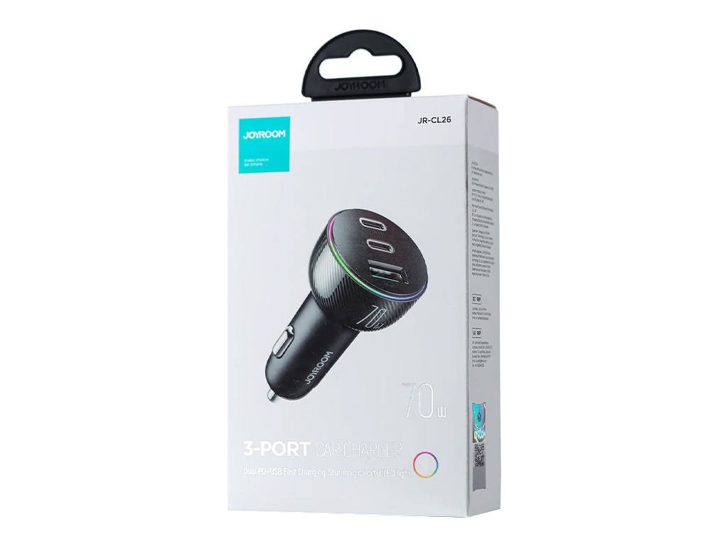 Nabíječka do auta Joyroom JR-CL26, 2x USB-C PD, 1x USB 70W (černá)
