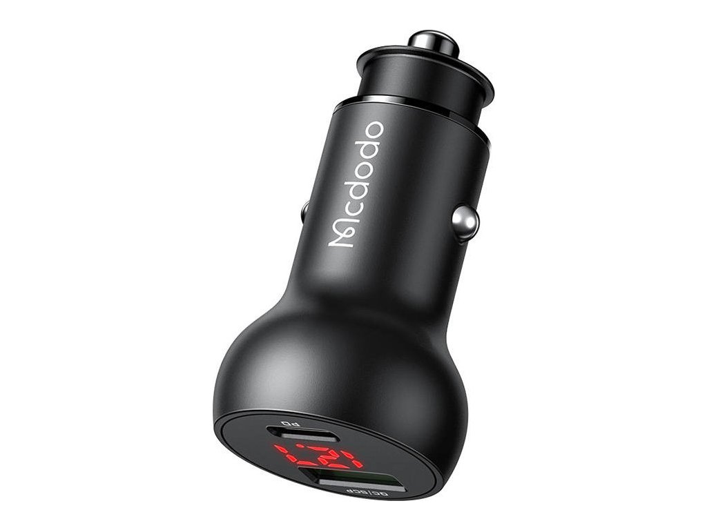 Mcdodo CC-7030 nabíječka do auta, USB + USB-C, s displejem, 45W (černá)