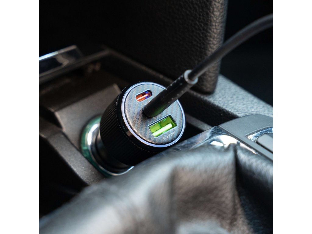 Profesionální autonabíječka s podporou PD 3.0 a QC 4.0, navržená pro rychlé nabíjení notebooků, tabletů i smartphonů. Celkový výkon až 95 W zvládne napájet i náročná zařízení během jízdy. Součástí balení je 1m USB-C/USB-C kabel (3A, 60W, soft silicone). Modrý LED prstenec usnadňuje připojení kabelů i ve tmě.
