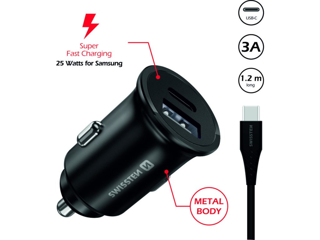 SWISSTEN CL PRO SAMSUNG SUPER FAST CHARGING 25W + KABEL USB-C/USB-C 1,2 M BLACK