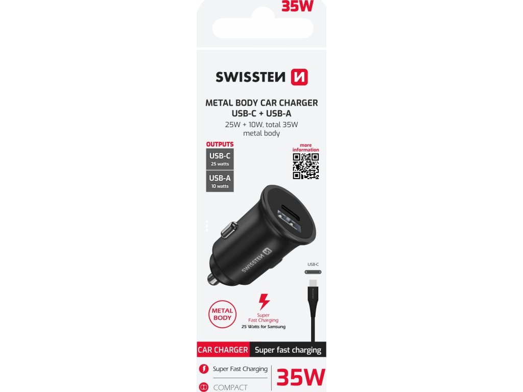 Elegantní metalický adaptér v minimalistickém designu s dobíjecím formátem SAMSUNG Super Fast Charging 25W s celkovým výkonem 35W a kabelem USB-C/USB-C. Baleno v blistru SWISSTEN.