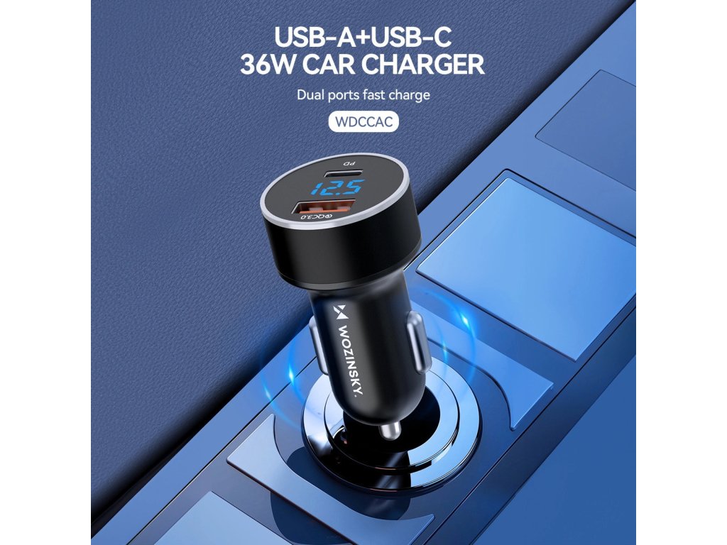 Wozinsky WDCCAC USB-C USB-A 36W autonabíječka - černá