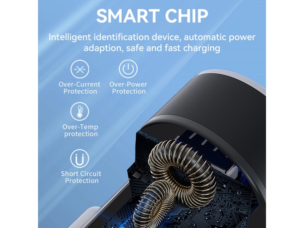 - Chrání připojená zařízení. Má vestavěnou ochranu proti přepětí a nadměrnému zahřátí.