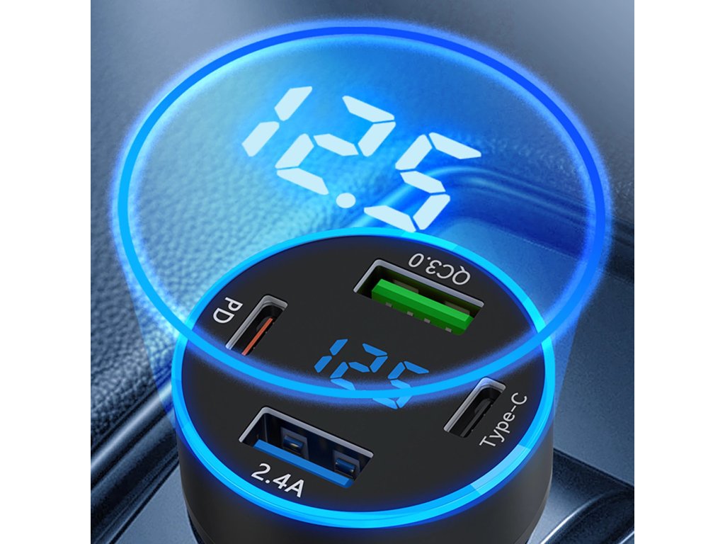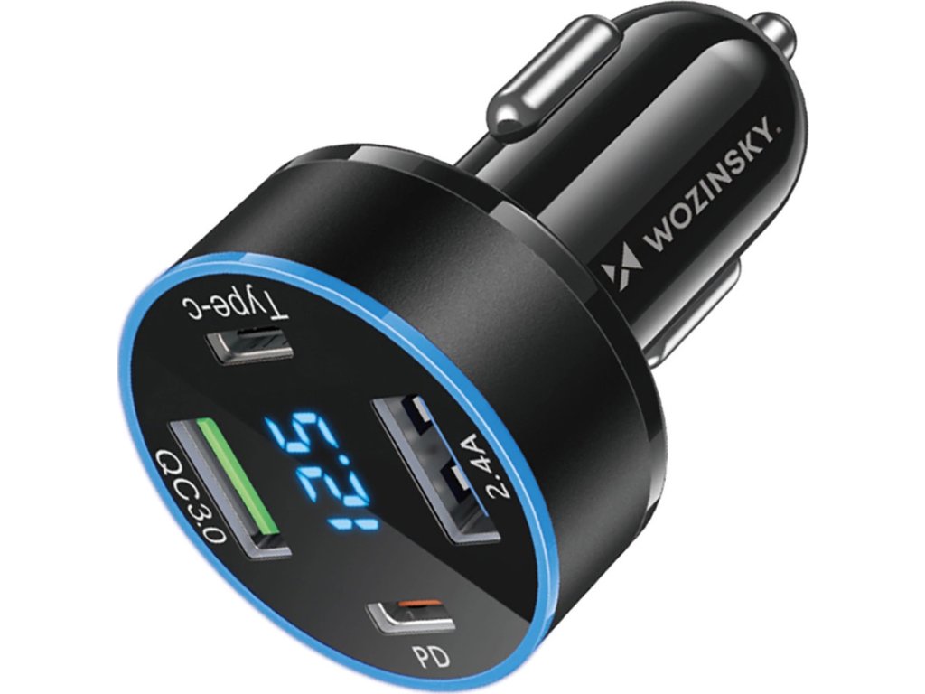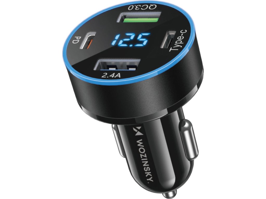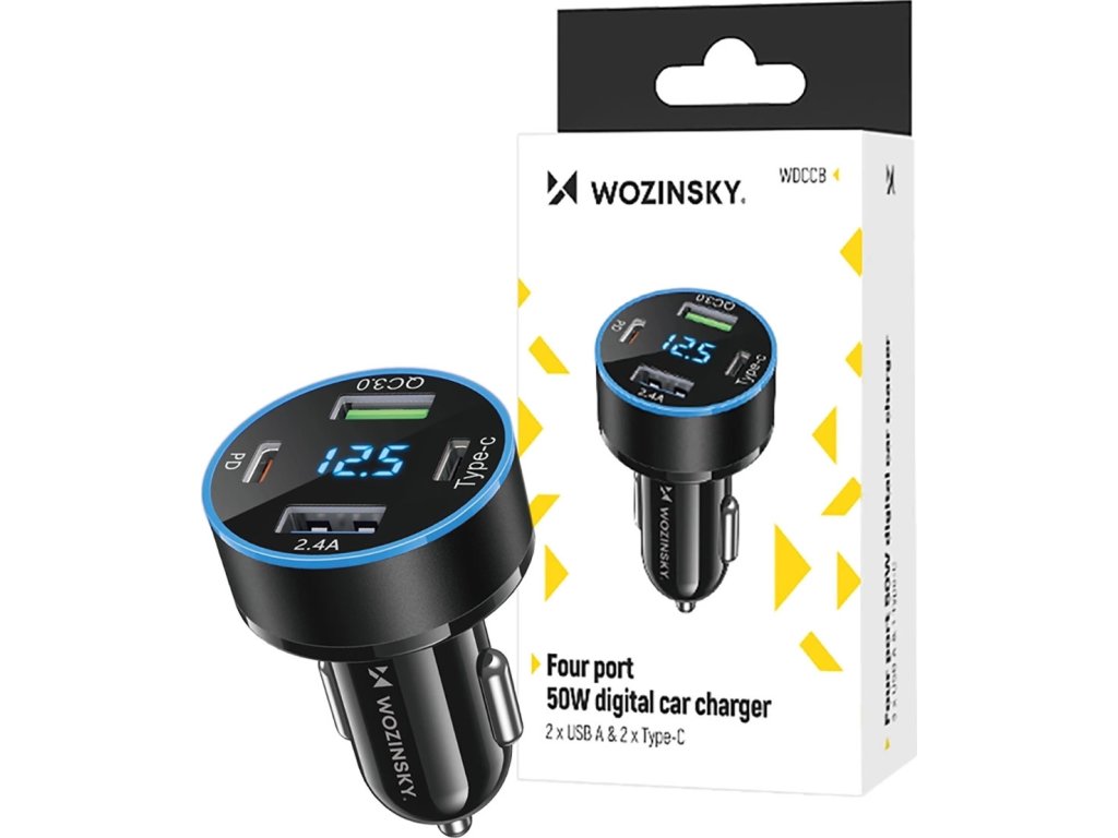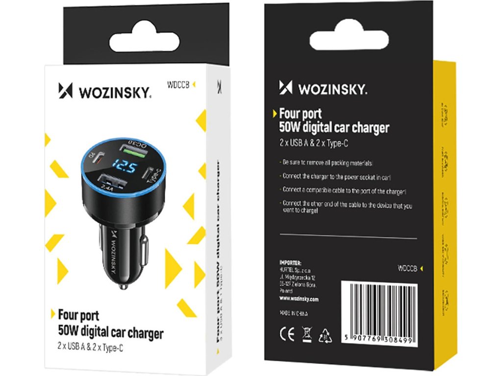 Wozinsky WDCCB Autonabíječka s displejem 50W 2xUSB-C / 2xUSB-A - Černá