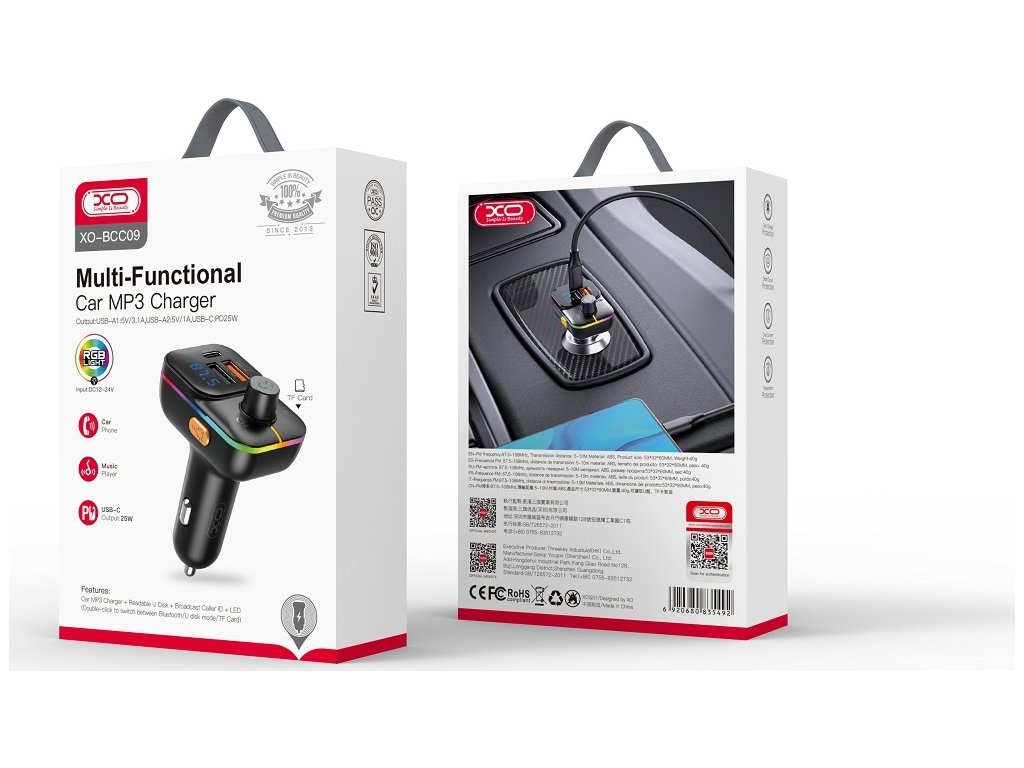 XO vysílač FM BCC09 Bluetooth MP3 nabíječka do auta 25W černá