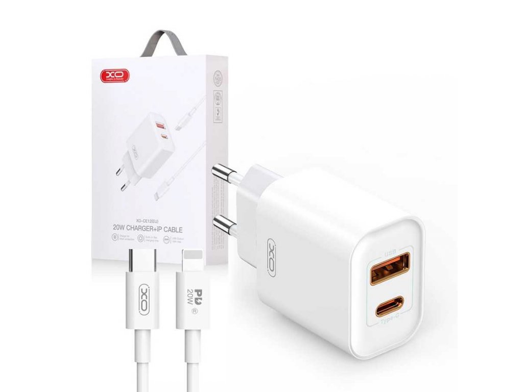 Rychlonabíječka XO CE12 PD QC 3.0 20W 1x USB 1x USB-C + kabel USB-C - Lightning, bílá