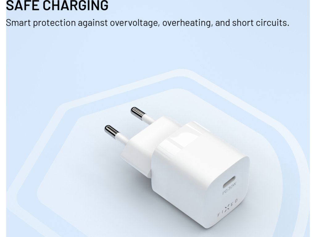 Miniaturní síťová nabíječka FIXED s výkonem 20 W je ideálním řešením pro rychlé a bezpečné doplnění energie vašich zařízení – od moderního smartphonu až po tablet či jinou elektroniku.