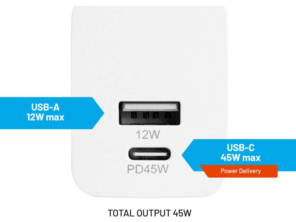 - USB-C port 45W max.s podporou Power Delivery 3.0
