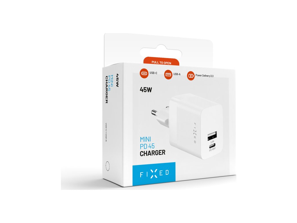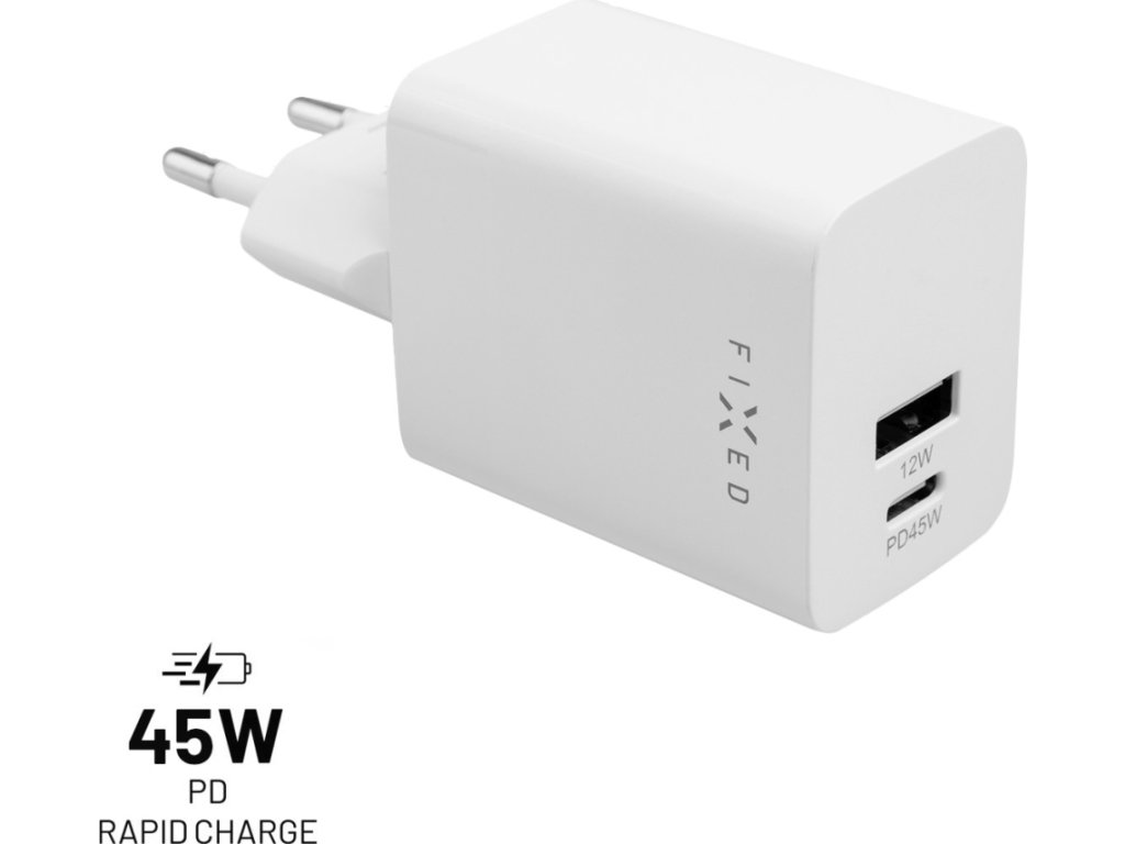Minimalistická nabíječka nové generace FIXED Mini s výkonem 45W a dvojicí portů USB-C a USB-A se postará o rychlé a bezpečné doplnění energie ve vašem smartphonu, tabletu nebo menšího notebooku. Díky moderním technologiím je tělo nabíječky je na první pohled mnohem kompaktnější než běžné nabíjecí adaptéry, je proto ideální na cesty a v situacích, kdy chcete mít nabíječku vždy po ruce. USB-C port s podporou Power Delivery 3.0 dokáže výkonem až 45W a výrazně tak zkrátí dobu nabíjení oproti klasickým nabíjecím adaptérům. Spolu s USB-A portem můžete nabíjet dvě zařízení současně a ušetřit tak čas potřebný k nabíjení. Nabíječka je ideální především pro nabíjení nejmodernějších smartphonů a tabletů, podporuje superrychlé nabíjení Samsung telefonů a je ideální i jako doplněk MagSafe nabíječky. Nabíjení je maximálně bezpečné a nehrozí žádné přehřívání ani přepětí. S nabíjecím adaptérem FIXED už nebudete mít strach, že vám dojde energie ve vašem mobilním zařízení, ať už jste doma, v kanceláři nebo na cestách.