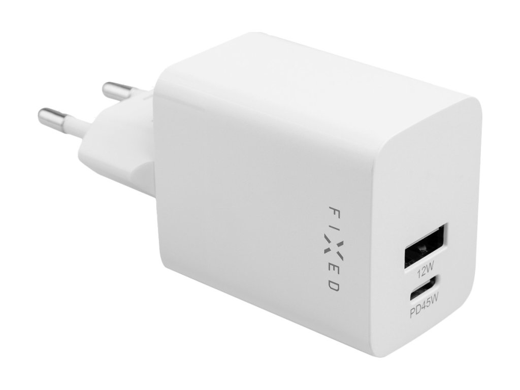 Síťová nabíječka FIXED Mini s USB-C a USB výstupem, podpora PD, 45W, bílá