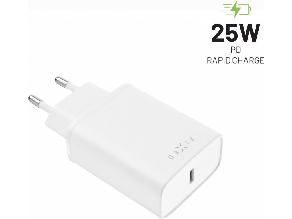 Síťová nabíječka FIXED s USB-C výstupem a podporou PD, 25W, bílá