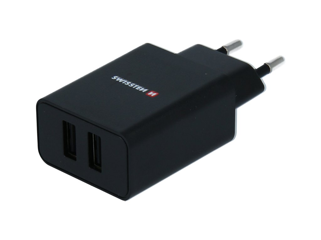 SWISSTEN SÍŤOVÝ ADAPTÉR SMART IC 2x USB 2,1A POWER + DATOVÝ KABEL USB / LIGHTNING 1,2 M ČERNÝ