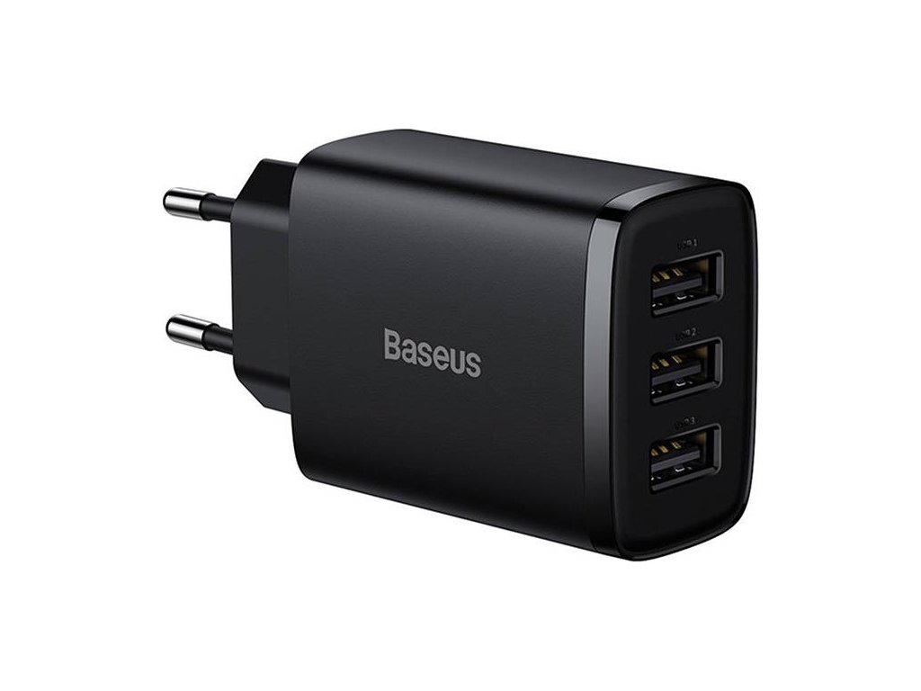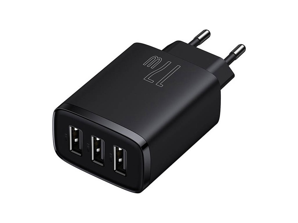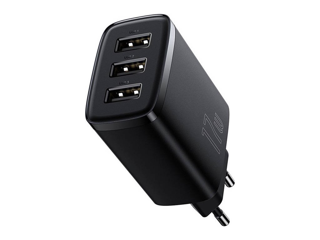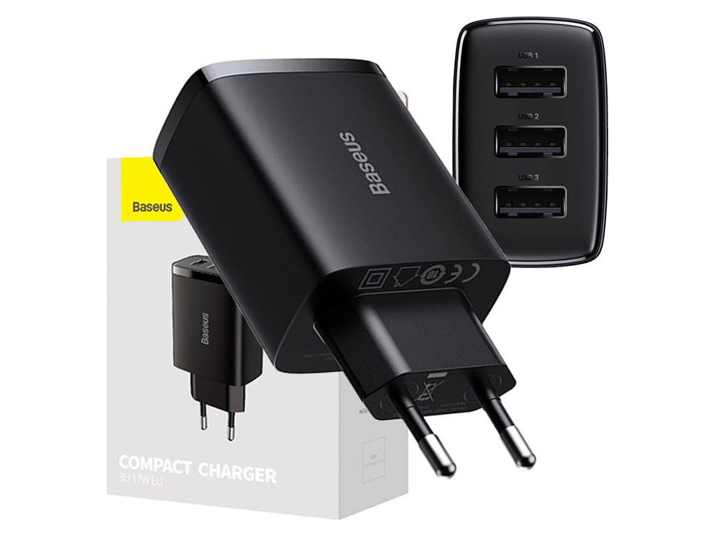 Baseus Compact Quick Charger, 3x USB, 17W (černá)