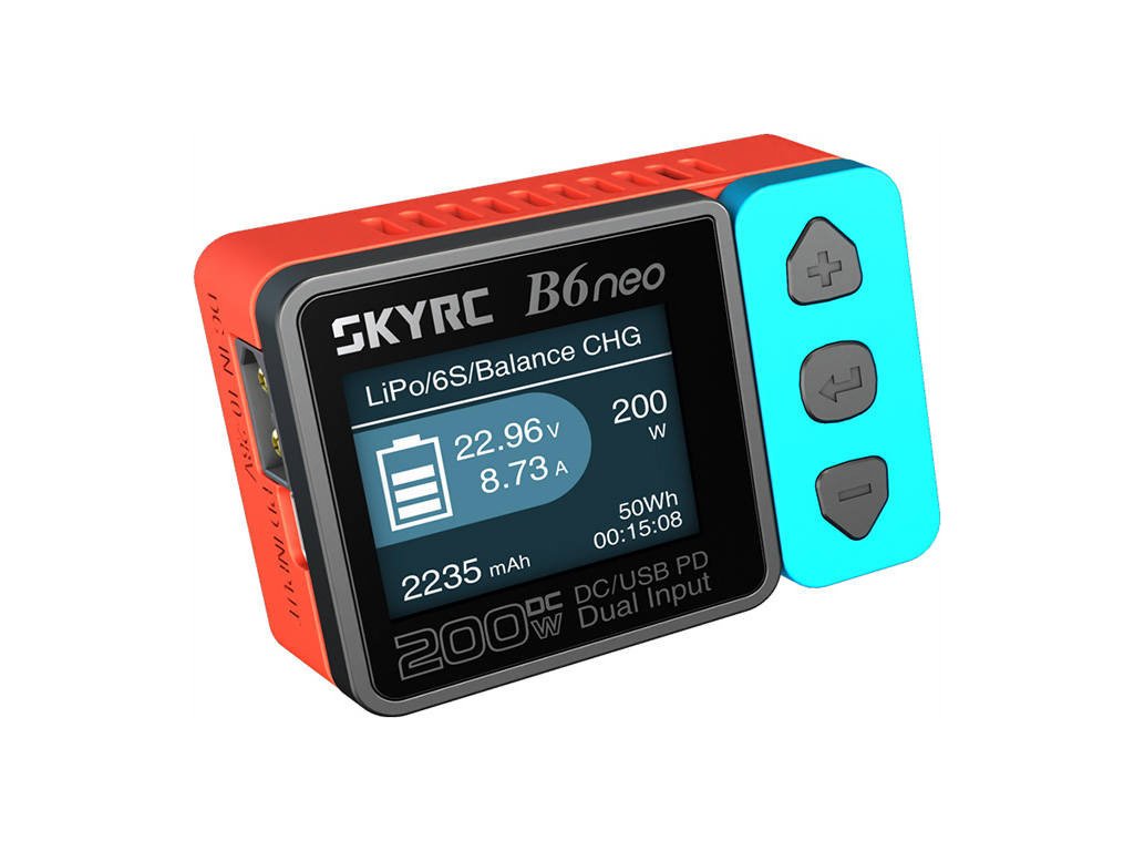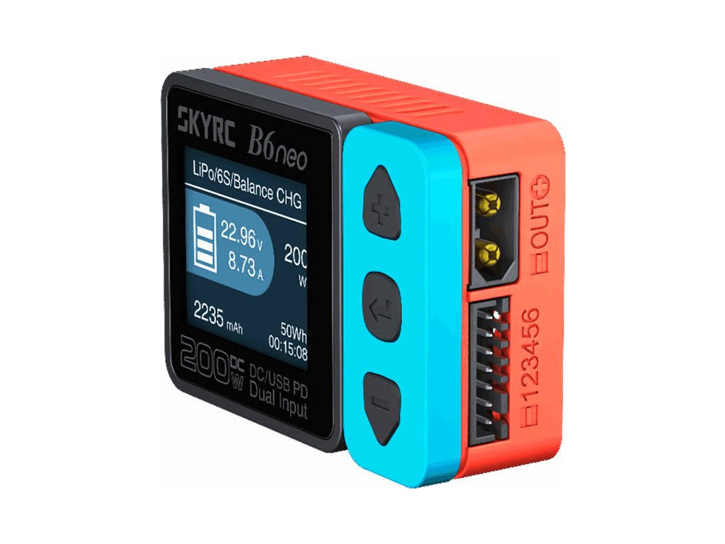 B6neo je kompaktní nabíječka s velkým výkonem. Navzdory svým malým rozměrům je schopna dodat až 200 W výkonu při nabíjení připojeném ke stejnosměrnému proudu. Kromě toho může fungovat jako digitální zdroj napájení s nastavitelným napětím od 5 do 27 V a proudem od 1 do 10 A. Rozhraní ColorX, vestavěné bezpečnostní funkce a snadné aktualizace firmwaru prostřednictvím specializované aplikace Charger Master dělají z B6neo nabíječku vhodnou pro dnešní potřeby. Bezpečnost, výkon a pohodlí jsou to, co odlišuje produkt SkyRC od ostatních.